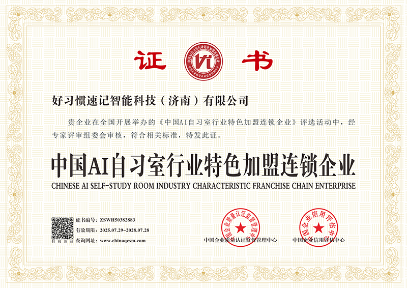 好习惯单词速记AI自习室作为“AI+线下督导”模式的创新引领者,自2014年创立以来,已在山东、河南、河北、江苏、安徽、四川、云南等全国100余个城市开设近400家直营及合作校区,成功帮助教培转型者、创业宝妈、职场跨界人士、县域小微创业者等各界同仁实现低门槛盈利,破解传统教培“师资缺、成本高、转型难”的行业痛点。